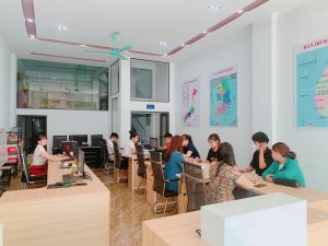 Các phòng học tại trung tâm được thiết kế đạt tiêu chuẩn quốc tế “Không gian này giúp các em học sinh du học - XKLĐ không quá bỡ ngỡ khi sang nước ngoài học. Trung tâm này là nơi để các em học sinh có một vốn kiến thức ngoại ngữ và văn hóa của đất nước mà các em sẽ đi du học”